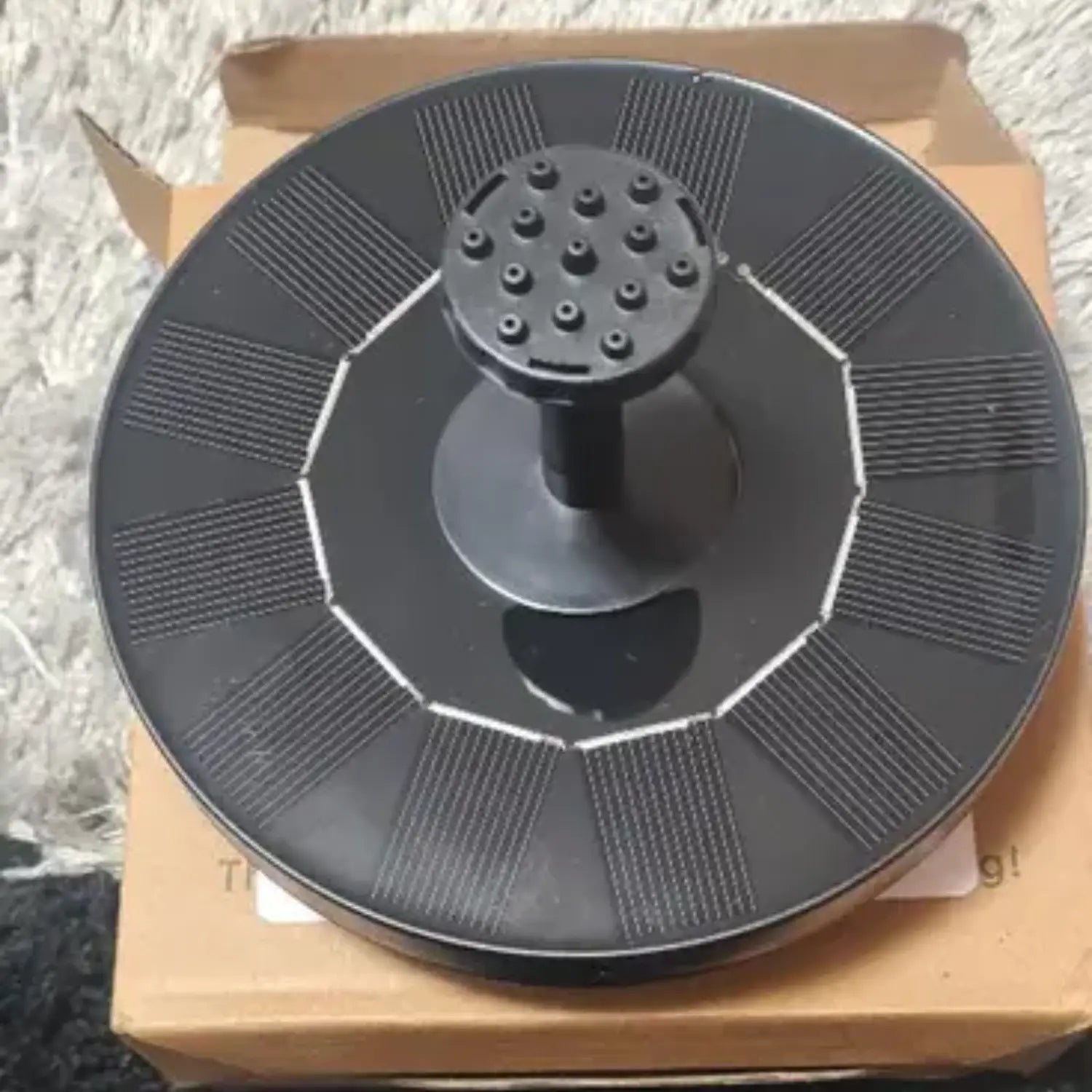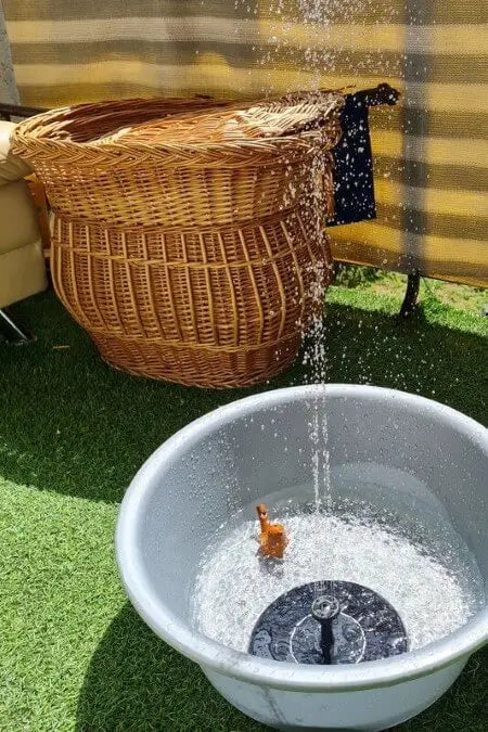 Korak 1 – Izvadite fontanu iz pakovanja i postavite je u posudu s vodom (npr. u baštenski lavor, jezerce ili saksiju).
